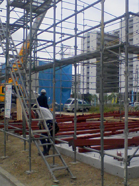 今日、家の鉄骨を組んでいます。